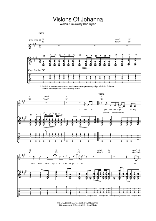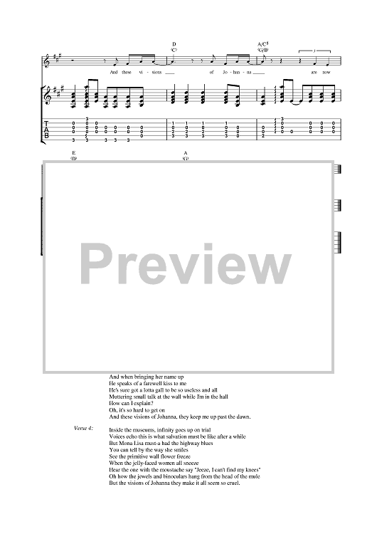 Digital Sheet Music for Visions Of Johanna by Bob Dylan scored for Guitar Tab; id:375656