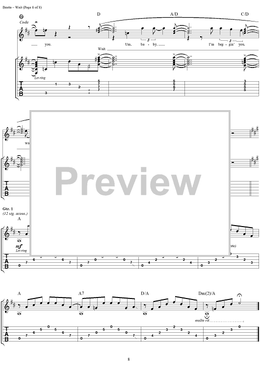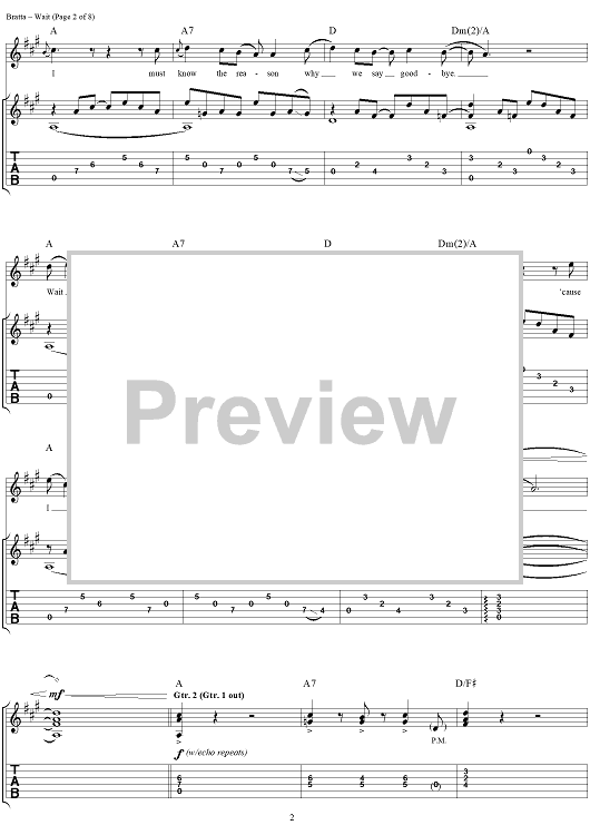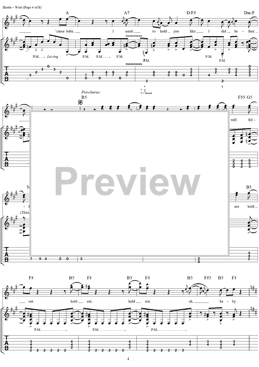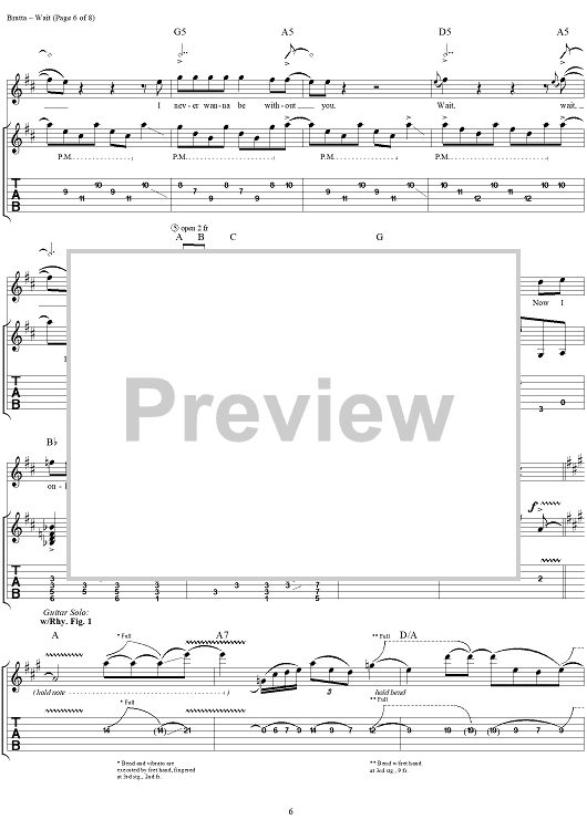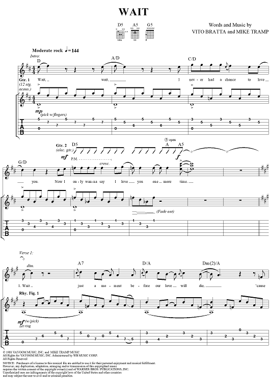 Digital Sheet Music for Wait by White Lion, Vito Bratta, Mike Tramp scored for Guitar Tab/Vocal; id:283342