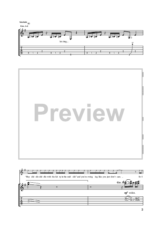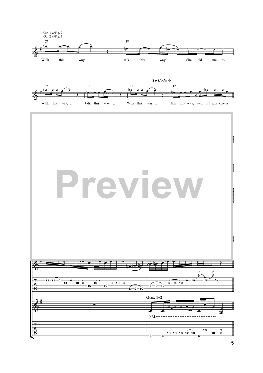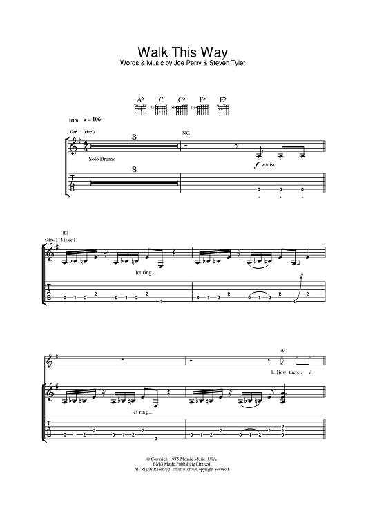 Digital Sheet Music for Walk This Way by Aerosmith, Steven Tyler, Joe Perry scored for Guitar Tab; id:389205