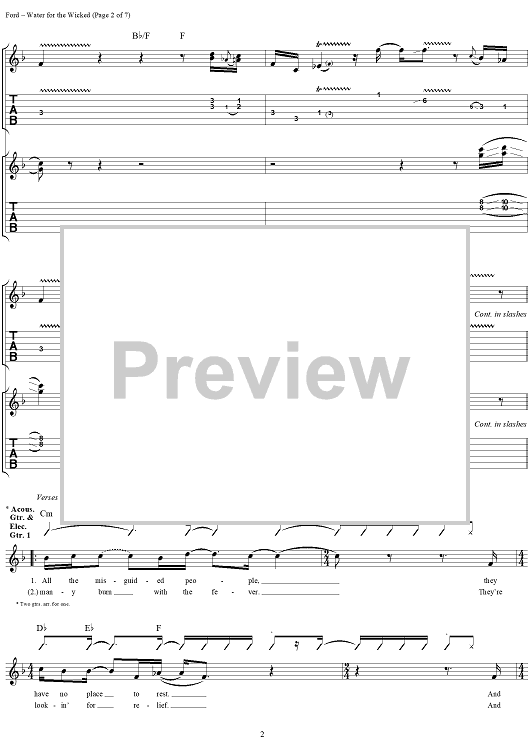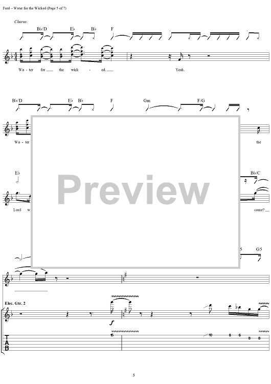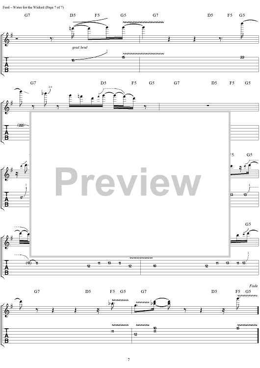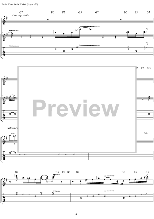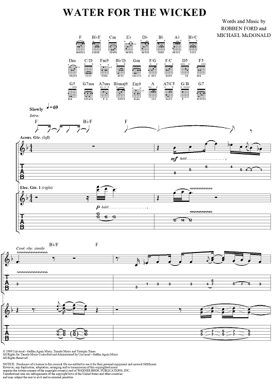 Digital Sheet Music for Water For The Wicked by Robben Ford, Michael McDonald scored for Guitar Tab/Vocal; id:205195