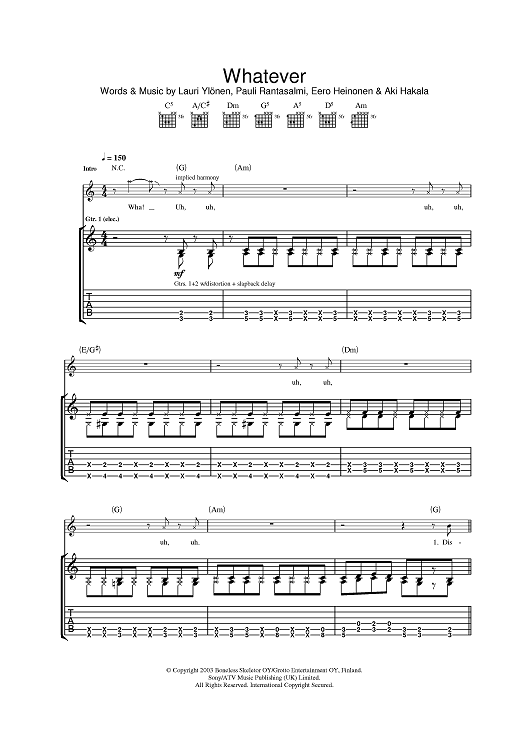 Digital Sheet Music for Whatever by Eero Heinonen, Pauli Rantasalmi, The Rasmus, Lintu scored for Guitar Tab; id:382944