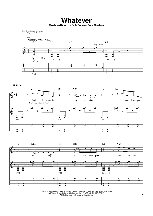 Digital Sheet Music for Whatever by Godsmack, Tony Rombola scored for Guitar Tab; id:389460