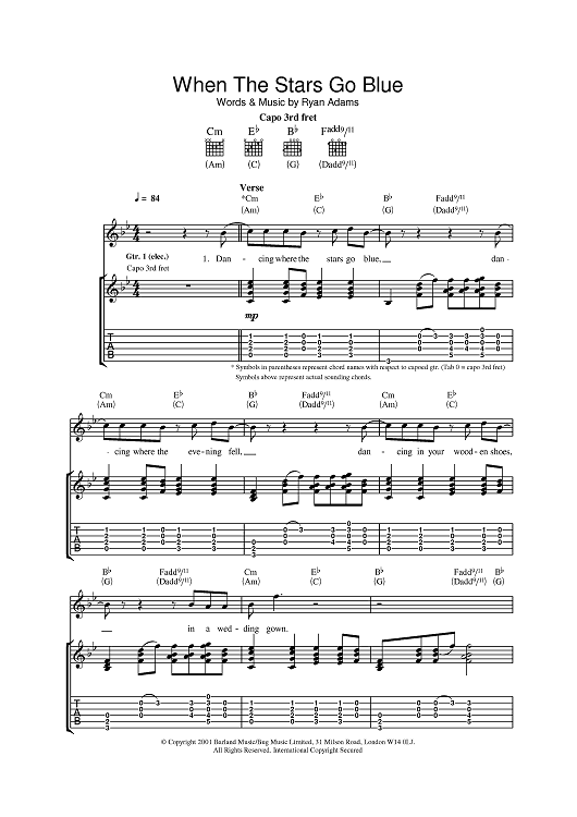 Digital Sheet Music for When The Stars Go Blue by Ryan Adams scored for Guitar Tab; id:384199