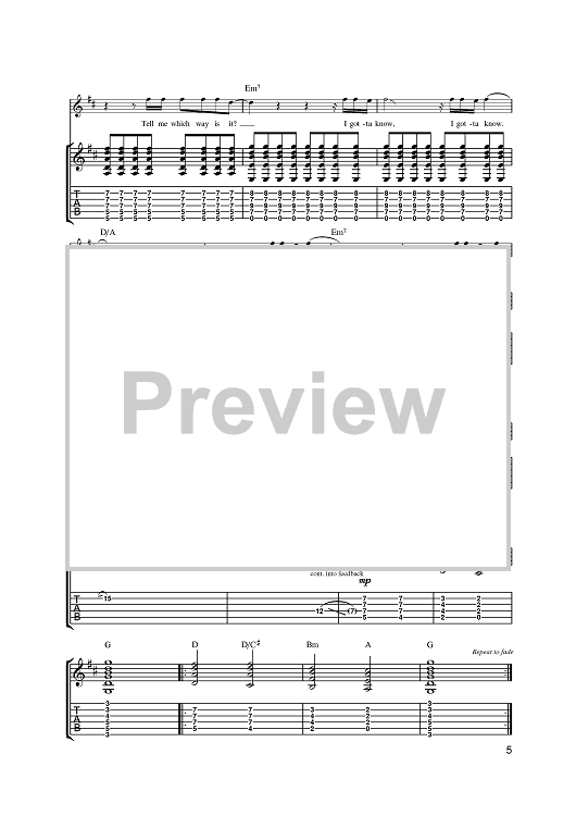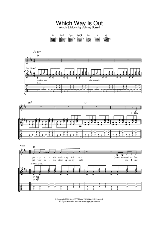 Digital Sheet Music for Which Way Is Out by Johnny Borrell, Razorlight scored for Guitar Tab; id:385611