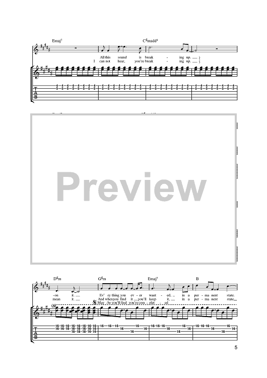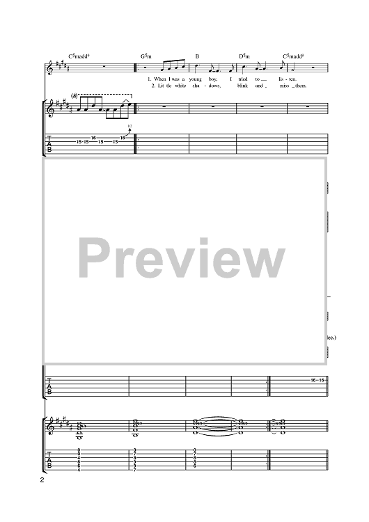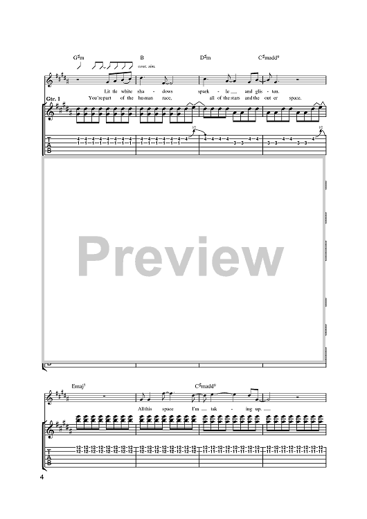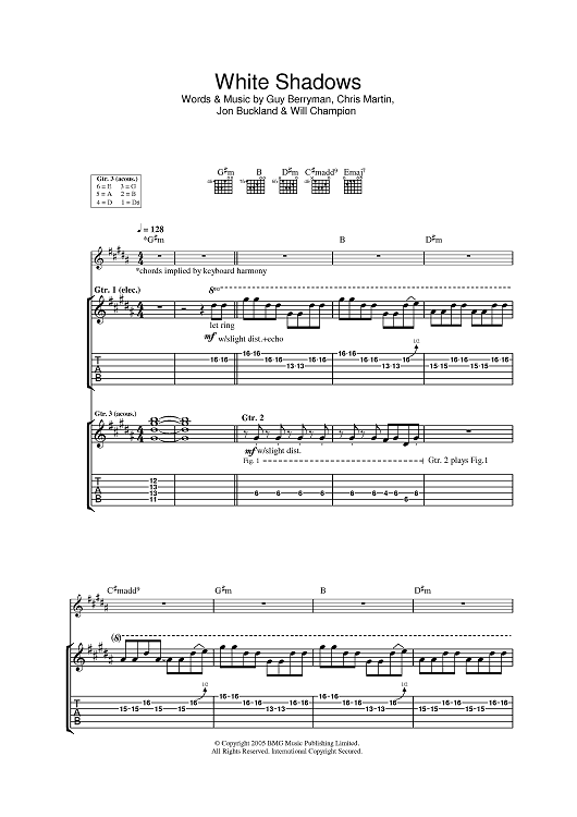 Digital Sheet Music for White Shadows by Chris Martin, Coldplay, Jonny Buckland, Guy Berryman scored for Guitar Tab; id:384549