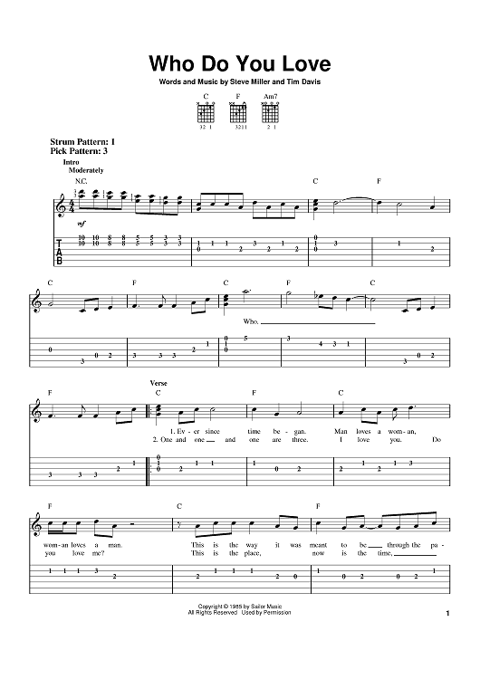 Digital Sheet Music for Who Do You Love by Steve Miller, Tim Davis, Steve Miller Band scored for Easy Guitar Tab; id:386215