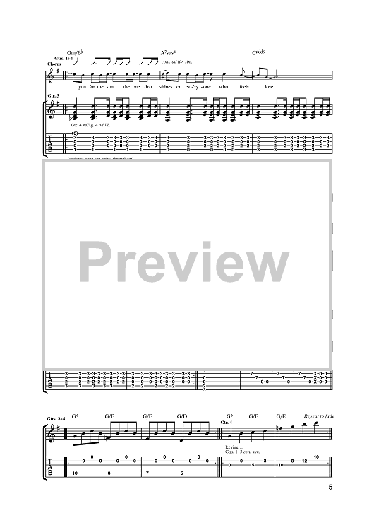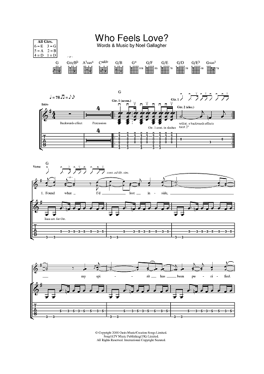 Digital Sheet Music for Who Feels Love? by Noel Gallagher, Oasis scored for Guitar Tab; id:385703