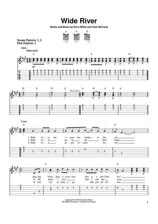 Digital Sheet Music for Wide River by Steve Miller, Chris McCarty, Steve Miller Band scored for Easy Guitar Tab; id:386210