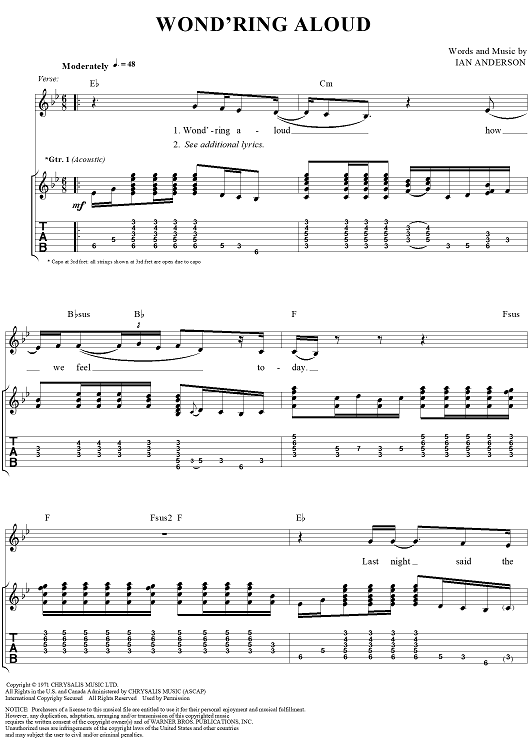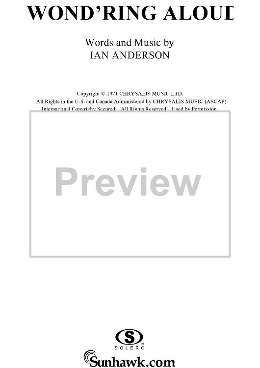"Wond'ring Aloud" Sheet Music by Jethro Tull