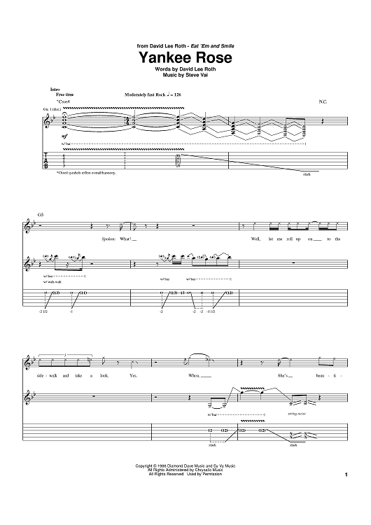 Digital Sheet Music for Yankee Rose by David Lee Roth, Steve Vai scored for Guitar Tab; id:381432