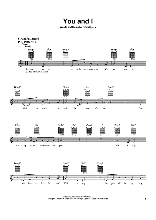 Digital Sheet Music for You And I by Frank Myers, Crystal Gayle, Eddie Rabbitt scored for Lead Sheet with Guitar Grids; id:383103