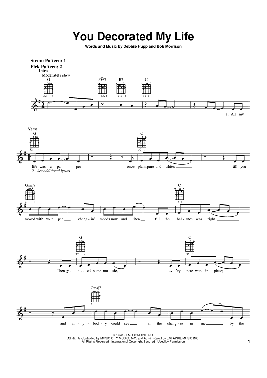 Digital Sheet Music for You Decorated My Life by Kenny Rogers, Bob Morrison, Debbie Hupp scored for Lead Sheet with Guitar Grids; id:383104