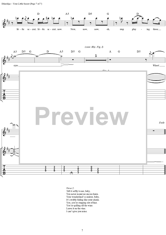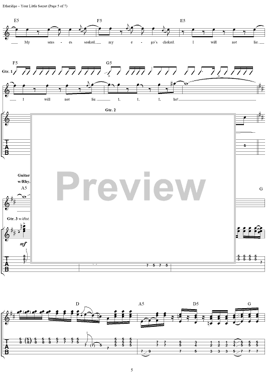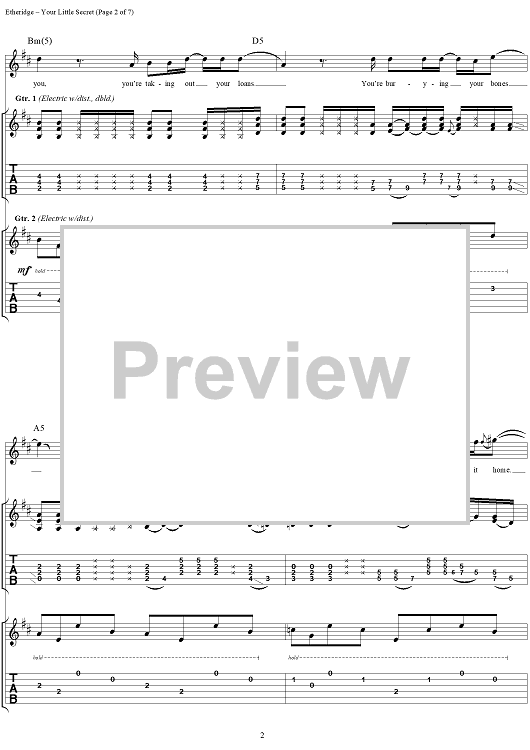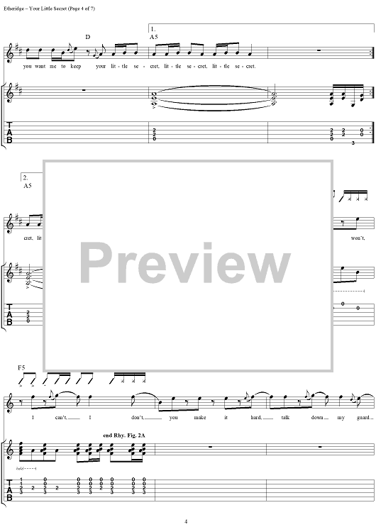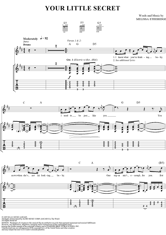 "Your Little Secret" Sheet Music by Melissa Etheridge