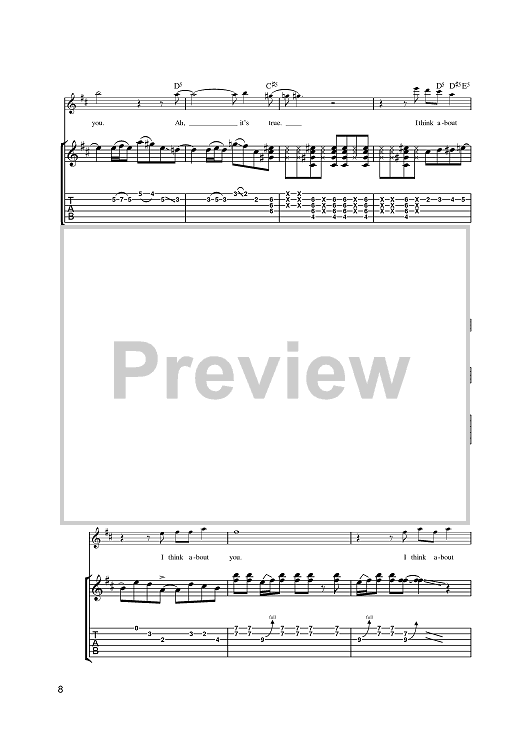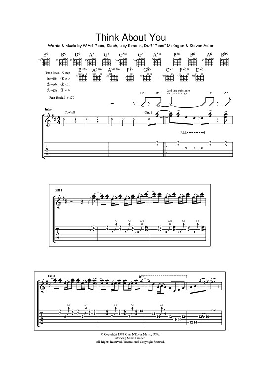 Digital Sheet Music for Think About You by W. Axl Rose, Izzy Stradlin, Slash, Steven Adler, Guns N' Roses, Duff McKagan scored for Guitar Tab; id:396175