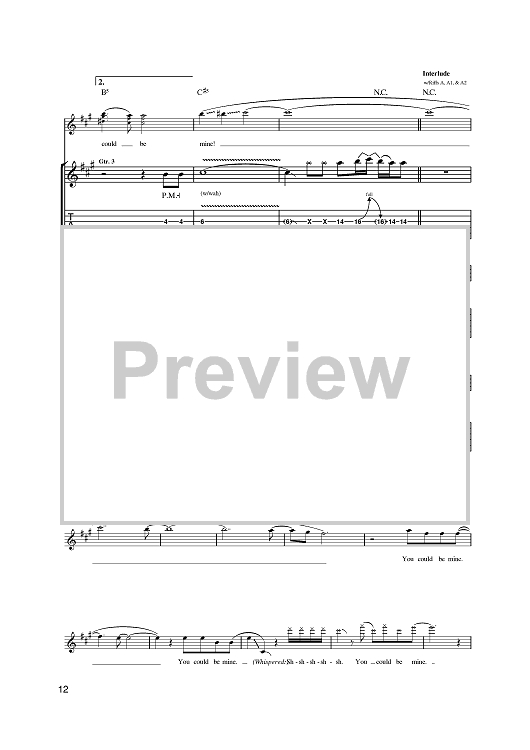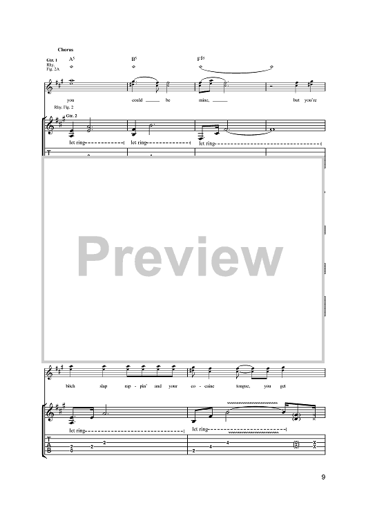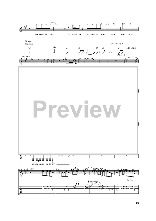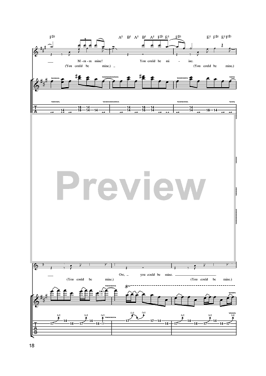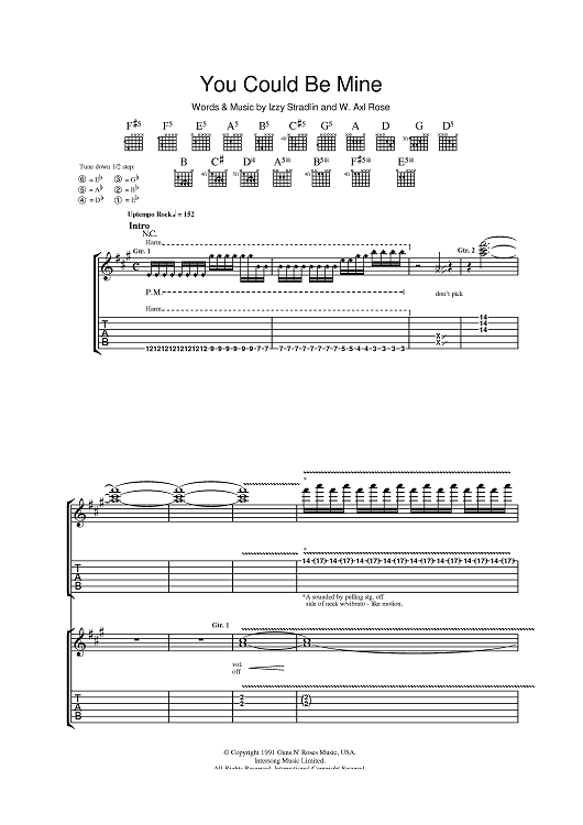 Digital Sheet Music for You Could Be Mine by W. Axl Rose, Izzy Stradlin, Guns N' Roses scored for Guitar Tab; id:396192