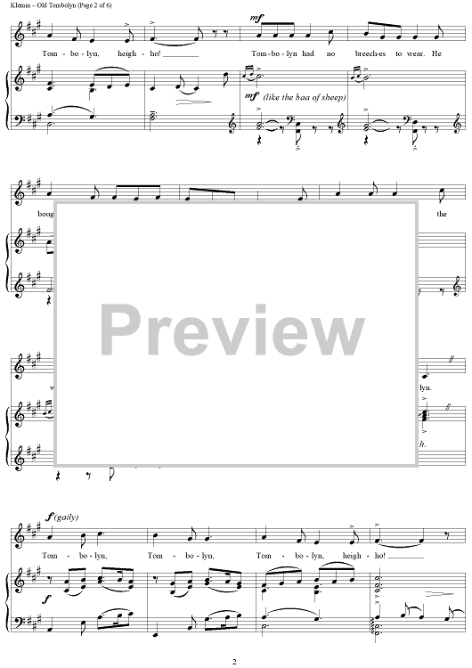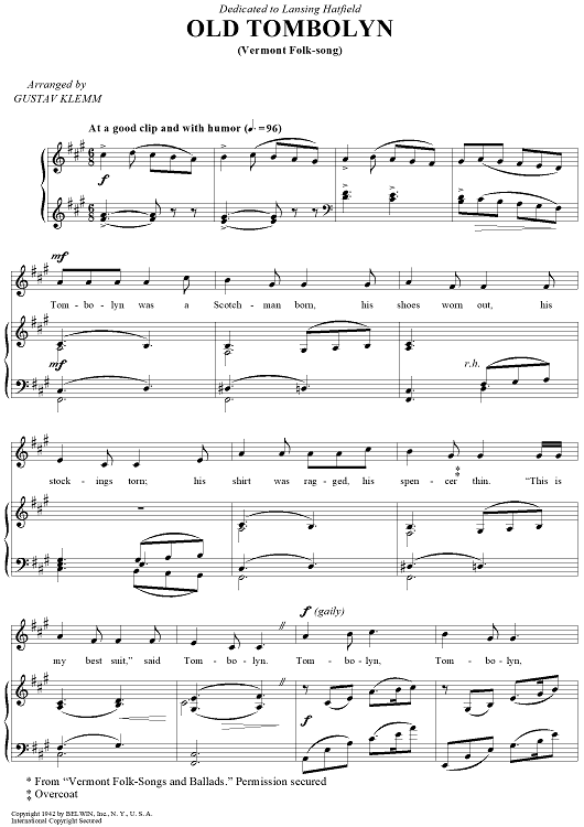 Digital Sheet Music for Old Tombolyn by Vermont Folk-song, Gustav Klemm scored for Piano/Vocal; id:419367