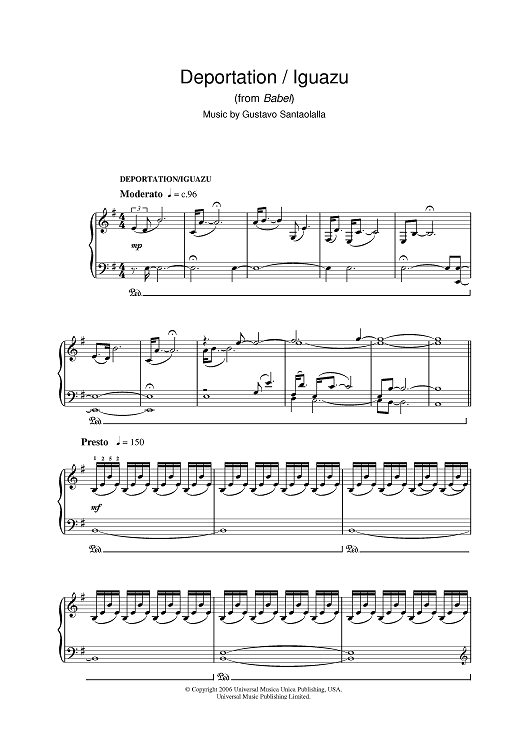 Digital Sheet Music for Deportation/Iguazu (from Babel) by Gustavo Santaolalla scored for Piano; id:398800