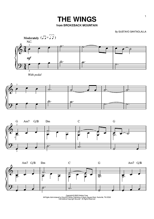 "The Wings" Sheet Music by Gustavo Santaolalla