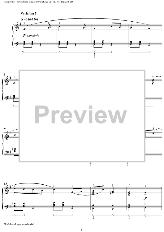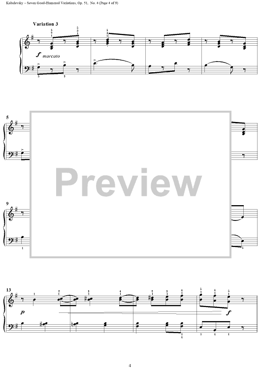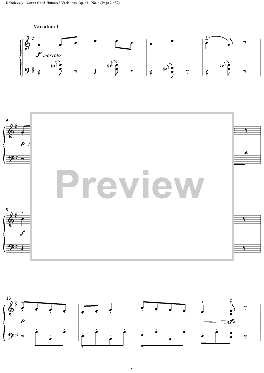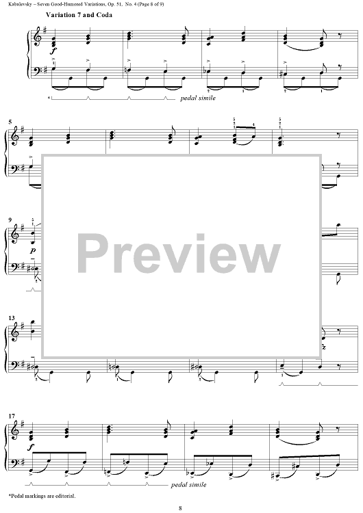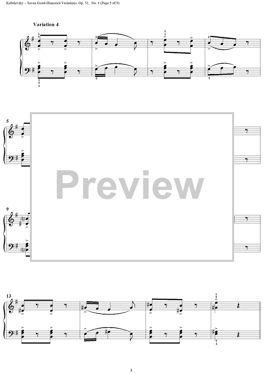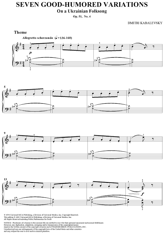 Digital Sheet Music for Seven Good-Humored Variations by Dmitri Kabalevsky, Guy Maier scored for Piano Solo; id:287286