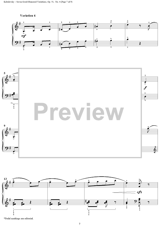 "Seven Good-Humored Variations" Sheet Music by Dmitri Kabalevsky