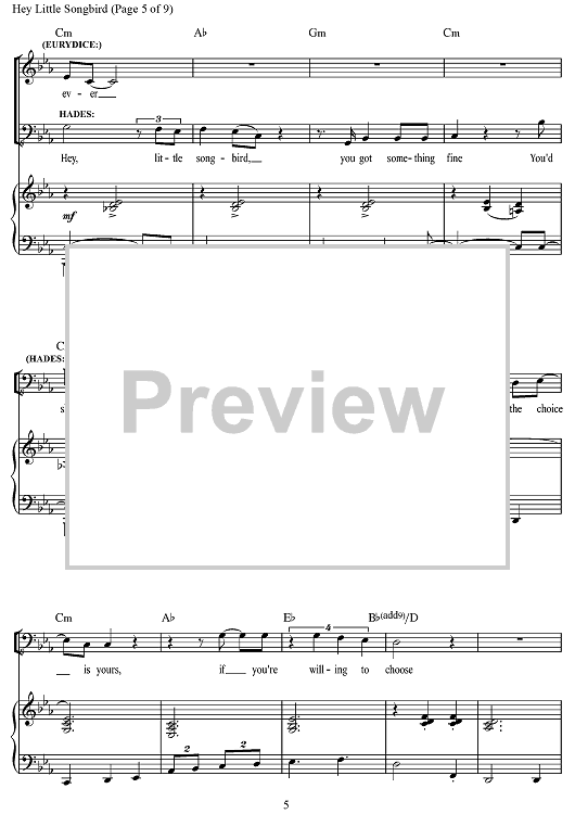 "Hey, Little Songbird" Sheet Music by Anaïs Mitchell