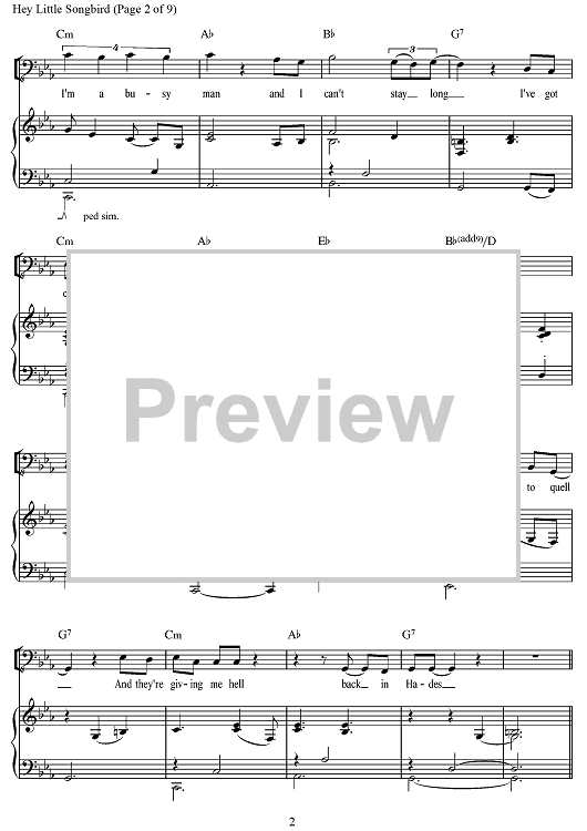 Digital Sheet Music for Hey, Little Songbird by Anaïs Mitchell, Michael Chorney, Todd Sickafoose, Liam Robinson scored for Piano/Vocal/Chords; id:497157