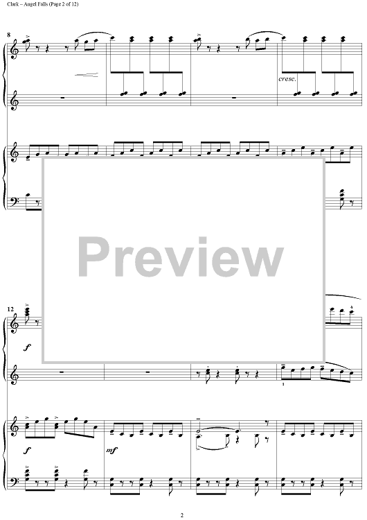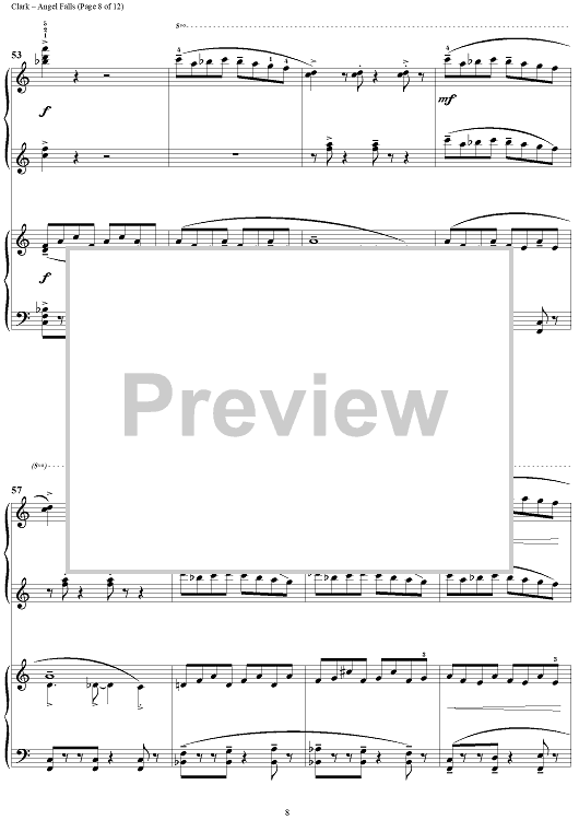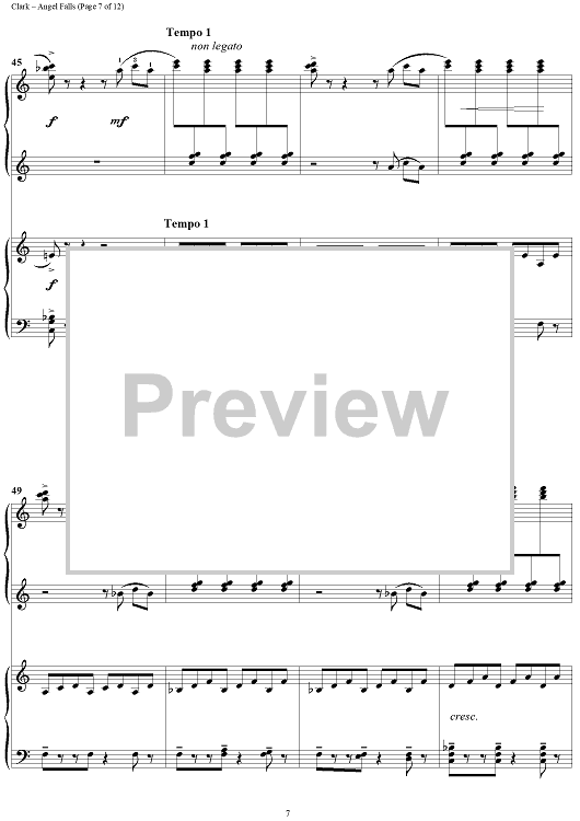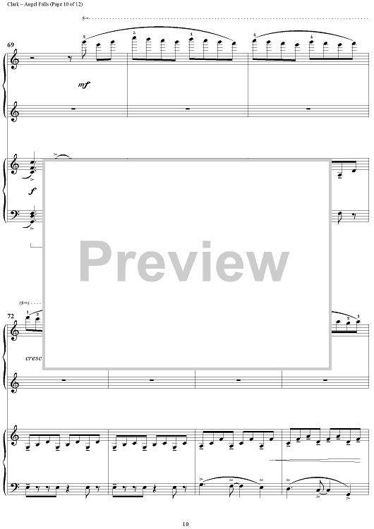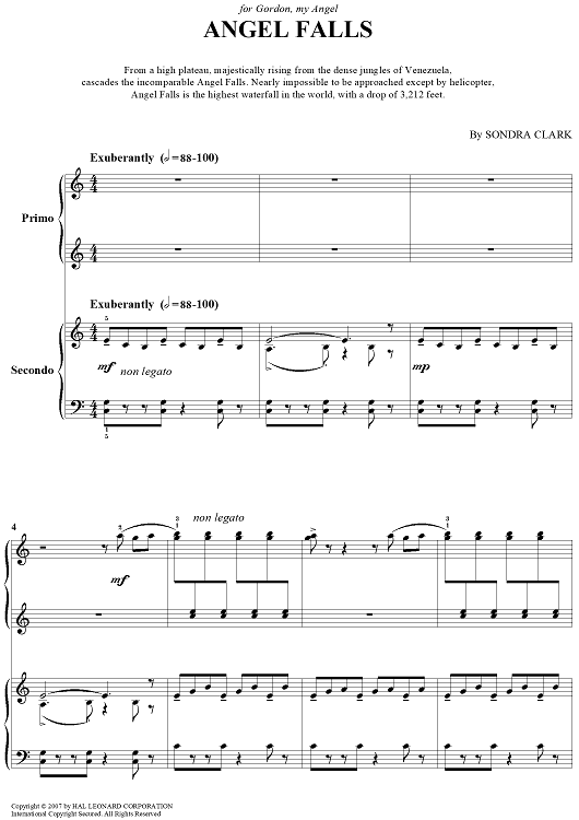 Digital Sheet Music for Angel Falls by Sondra Clark scored for 1 Piano, 4 Hands; id:402258