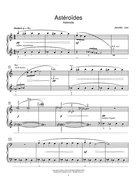 Digital Sheet Music for Asteroides (Asteroids) by Jennifer Linn scored for Piano; id:392943