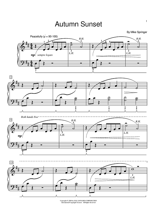 "Autumn Sunset" Sheet Music by Mike Springer