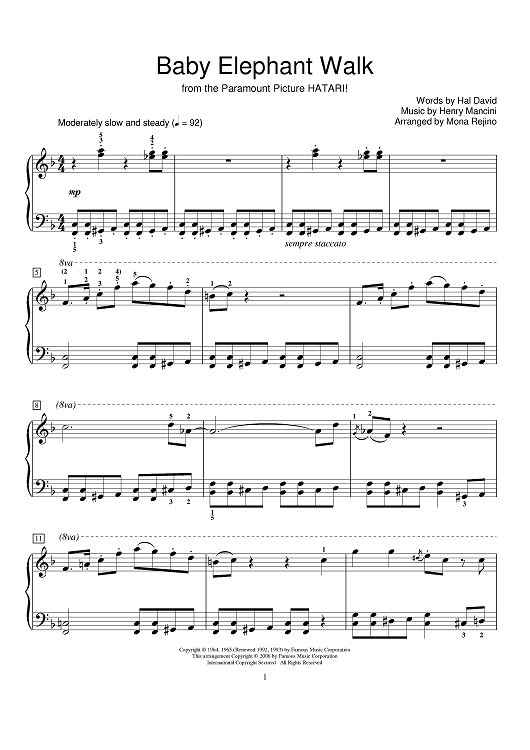 Digital Sheet Music for Baby Elephant Walk by Henry Mancini, Hal David, Mona Rejino scored for Piano; id:390096
