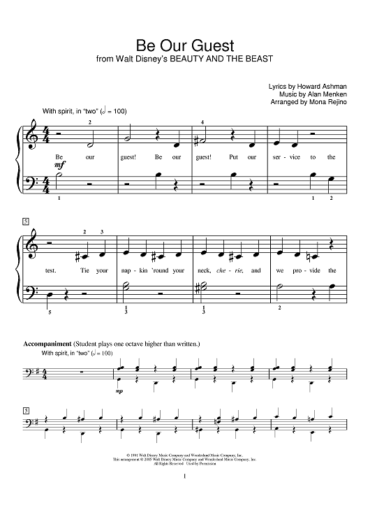 Digital Sheet Music for Be Our Guest by Alan Menken, Howard Ashman, Mona Rejino scored for Piano; id:388054