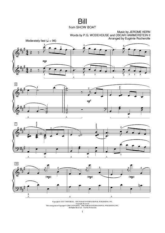 Digital Sheet Music for Bill by Jerome Kern, Oscar Hammerstein II, P.G. Wodehouse, Eugénie R. Rocherolle scored for Piano; id:381815