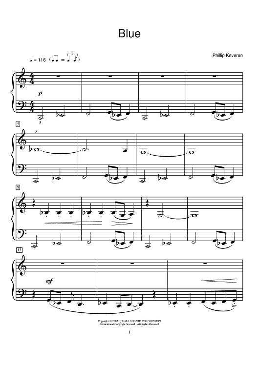 Digital Sheet Music for Blue by Phillip Keveren scored for Piano; id:402007