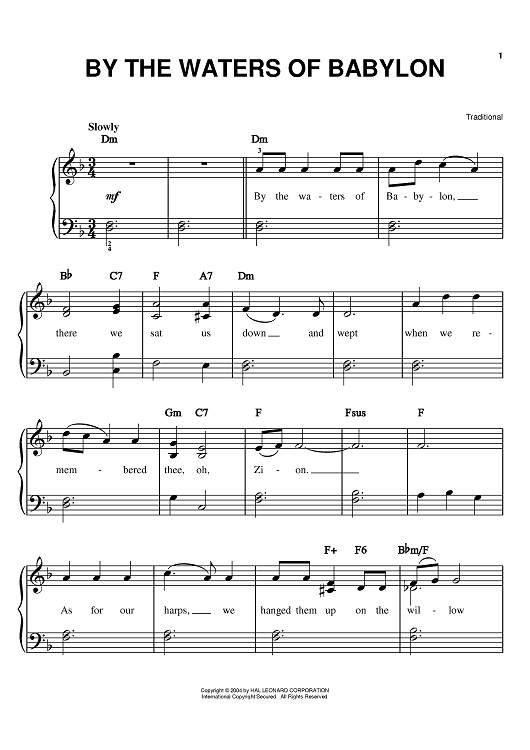 Digital Sheet Music for By The Waters Of Babylon by Traditional scored for Easy Piano; id:373889