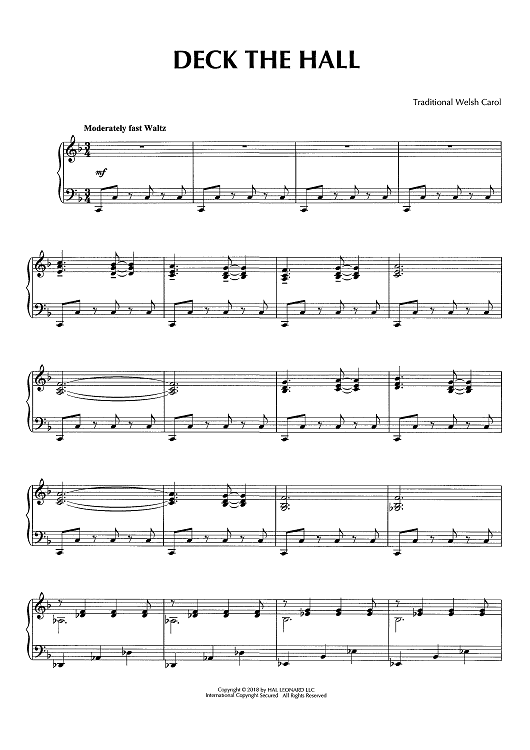 "Deck The Hall" Sheet Music by Traditional Welsh Carol