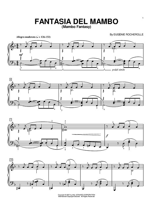 Digital Sheet Music for Fantasia Del Mambo (Mambo Fantasy) by Eugénie R. Rocherolle scored for Piano; id:395124