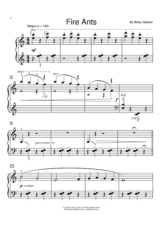 Digital Sheet Music for Fire Ants by Betsy Jackson scored for Piano; id:374373