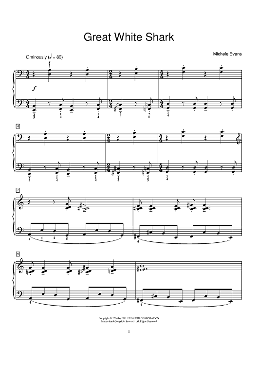 Digital Sheet Music for Great White Shark by Michele Evans scored for Piano; id:373898