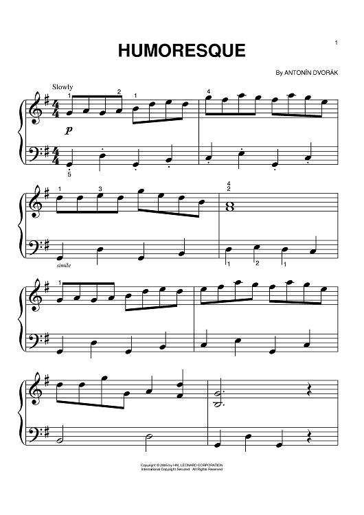Digital Sheet Music for Humoresque by Antonín Dvorák scored for Big Note Piano; id:383132