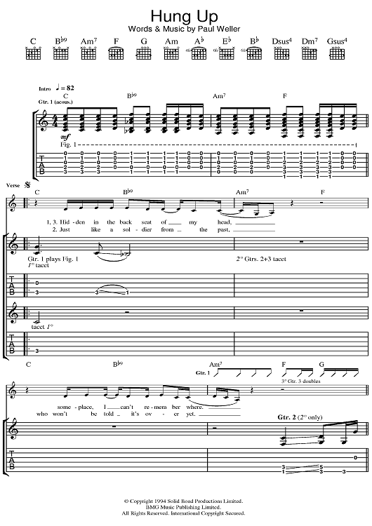 "Hung Up" Sheet Music by Paul Weller