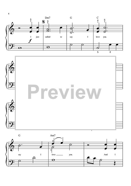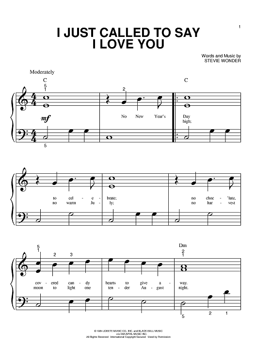 Digital Sheet Music for I Just Called To Say I Love You by Stevie Wonder scored for Big Note Piano; id:369321