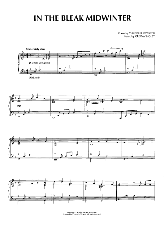 Digital Sheet Music for In The Bleak Midwinter by Christina Rossetti, Gustav Holst scored for Piano Solo; id:466492