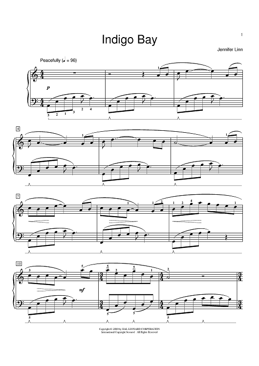 "Indigo Bay" Sheet Music by Jennifer Linn