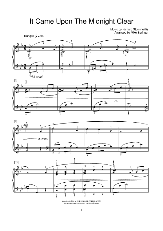 Digital Sheet Music for It Came Upon The Midnight Clear by Edmund Sears, Richard Storrs Willis, Mike Springer scored for Piano; id:379243