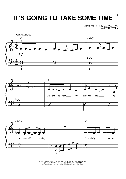 Digital Sheet Music for It's Going To Take Some Time by The Carpenters, Carole King, Toni Stern scored for Big Note Piano; id:396678