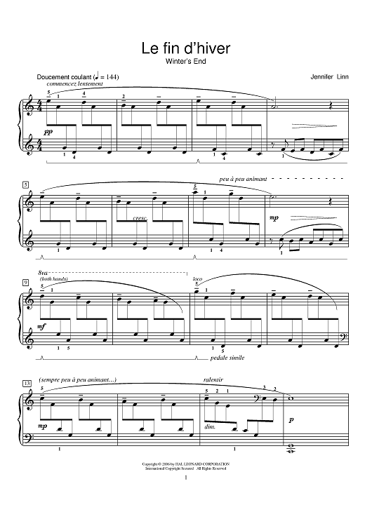 Digital Sheet Music for Le fin d'hiver (Winter's End) by Jennifer Linn scored for Piano; id:392942