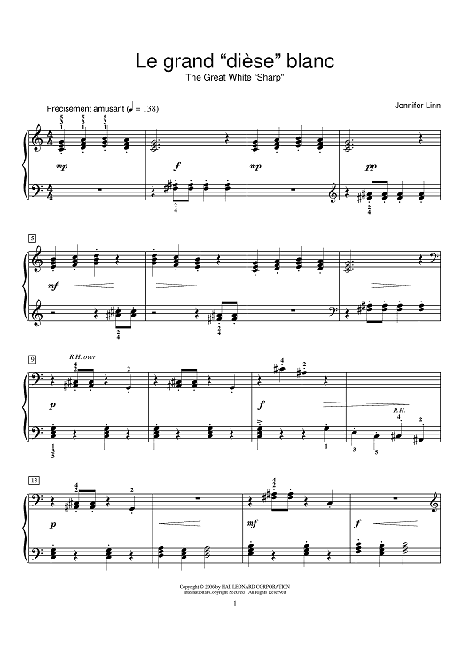 Digital Sheet Music for Le grand "diese" blanc (The Great White "Sharp") by Jennifer Linn scored for Piano; id:392944