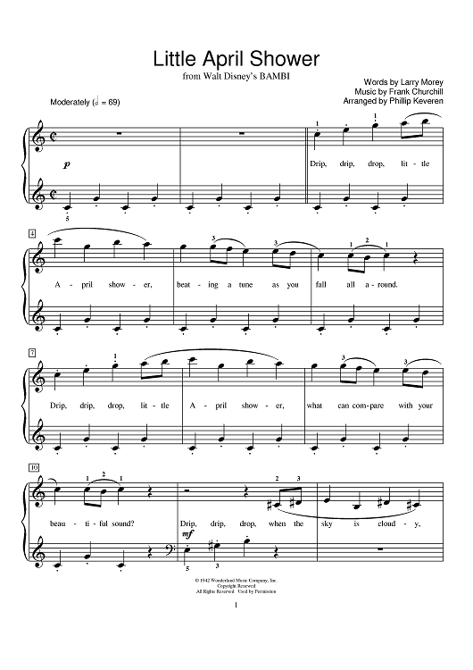 Digital Sheet Music for Little April Shower by Larry Morey, Frank Churchill, Phillip Keveren scored for Piano; id:391883