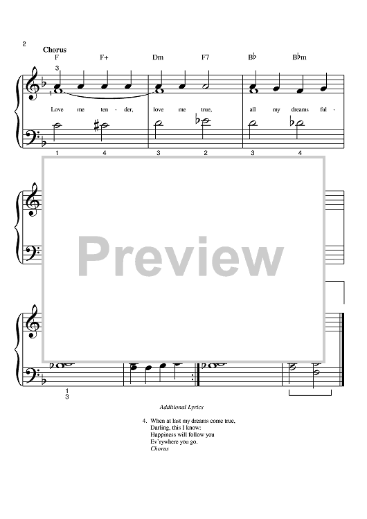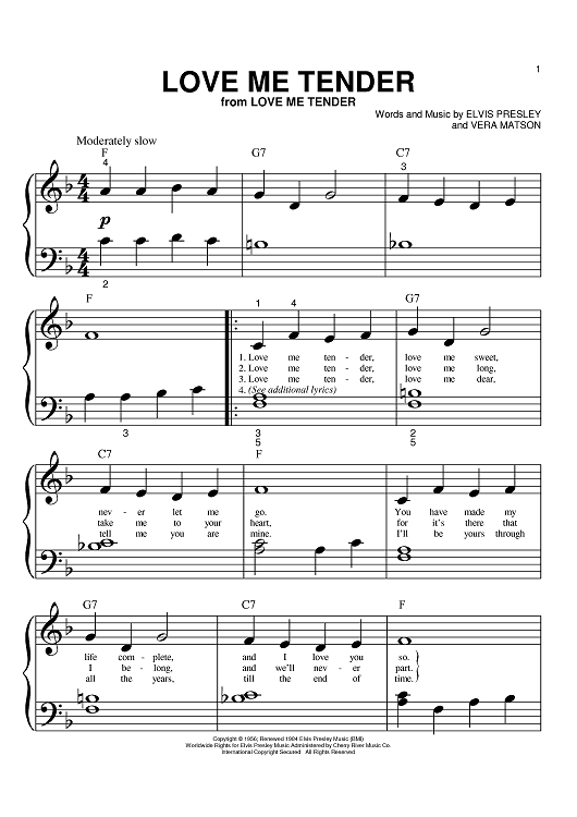Digital Sheet Music for Love Me Tender by Elvis Presley, Vera Matson scored for Big Note Piano; id:395326