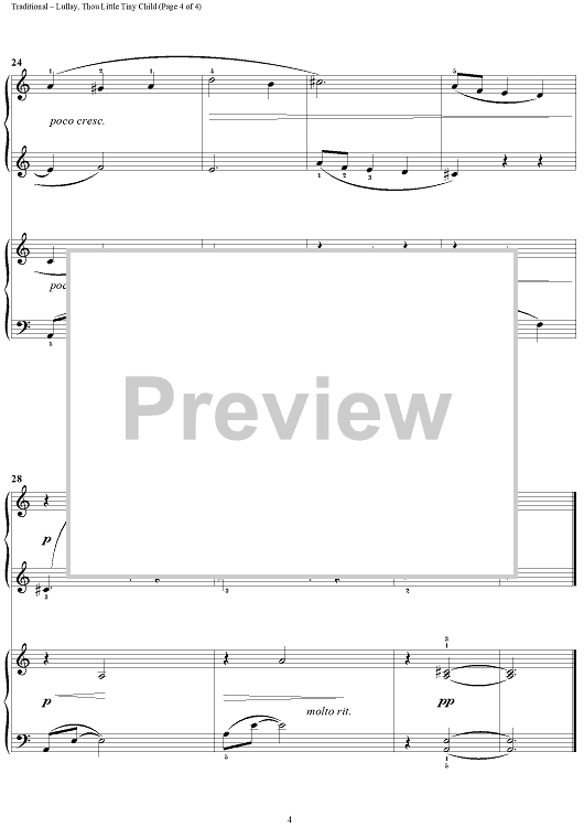 Digital Sheet Music for Lullay, Thou Little Tiny Child (Coventry Carol) by Traditional English Carol, Rosemary Barrett Byers scored for 1 Piano, 4 Hands; id:379425